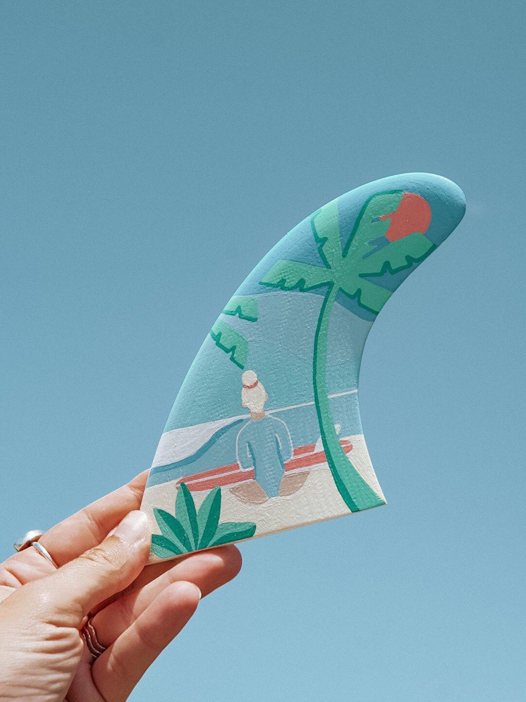 Dérive de surf fabriquée dans Les Landes en fibre de verre puis peinte à la main.