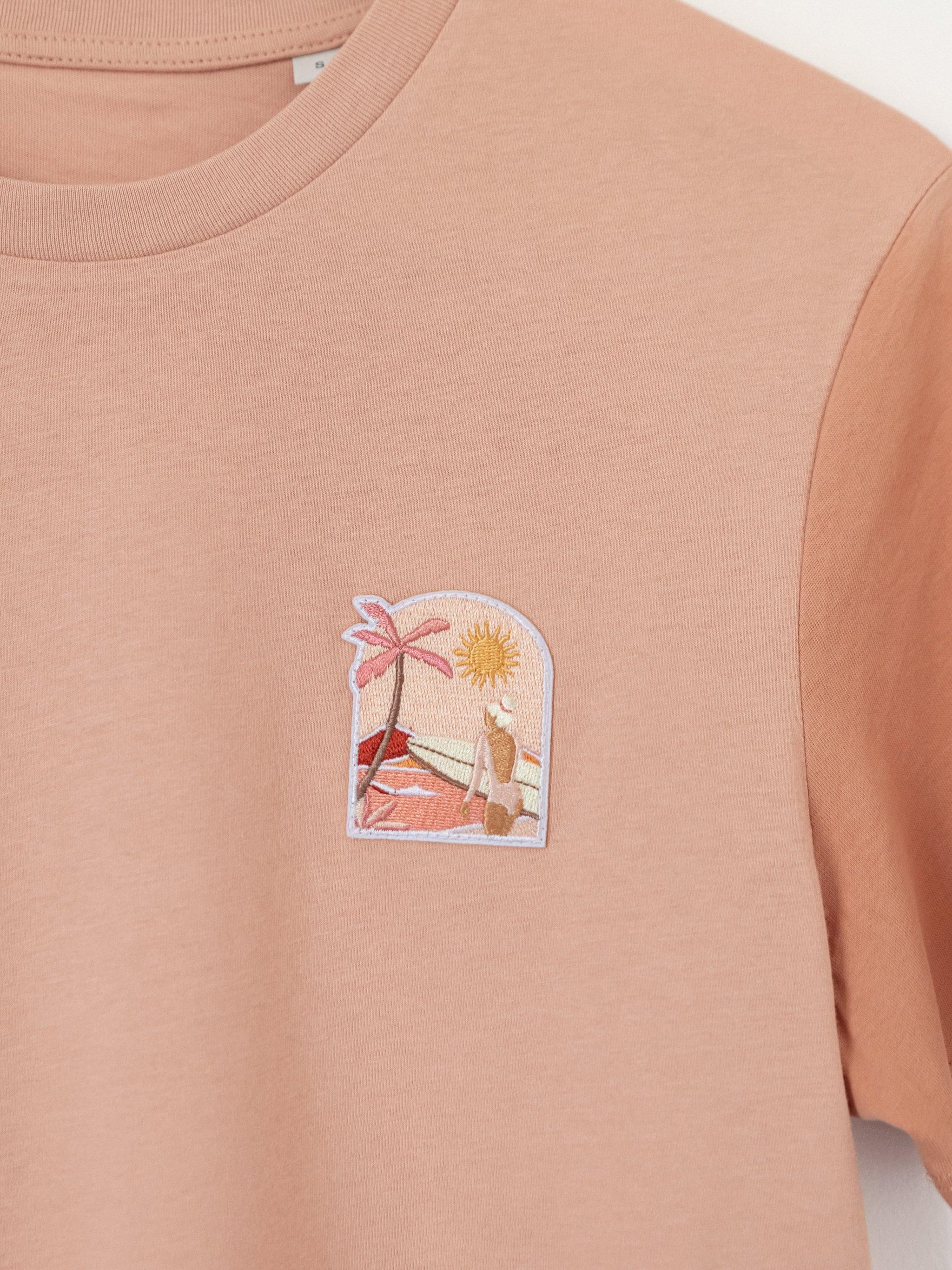 Étiquette sérigraphiée cousue en bas à bas à droite.