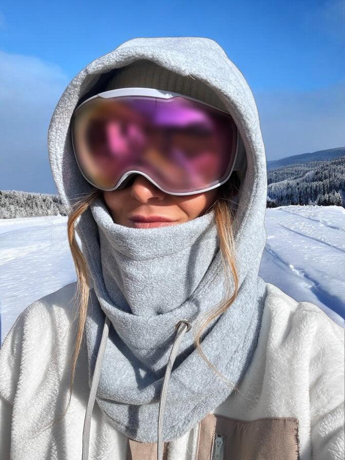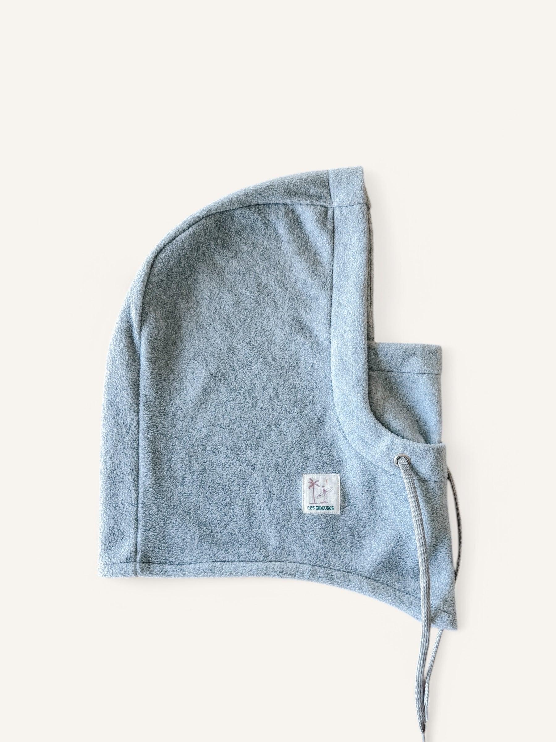 Cagoule en polaire grise épaisse, parfaite pour les journées froides en montagne pour le snowboard, à skis ou en randonnée.