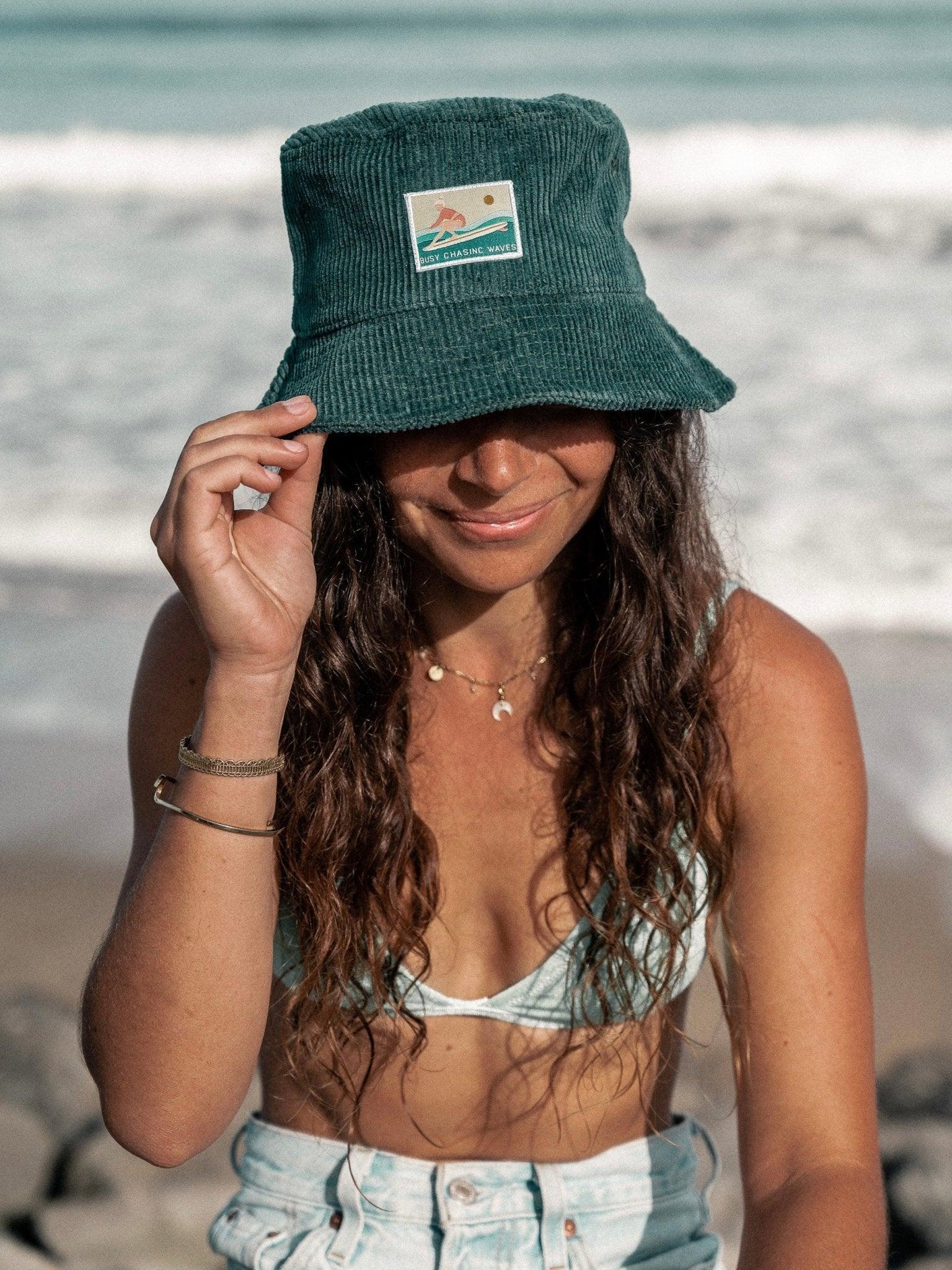 Sombrero de pescador de pana verde Busy Chasing Waves